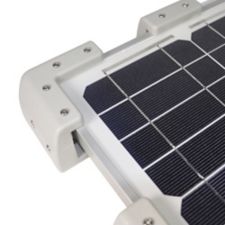 Panel features high efficiency crystalline solar cells for long lasting use.